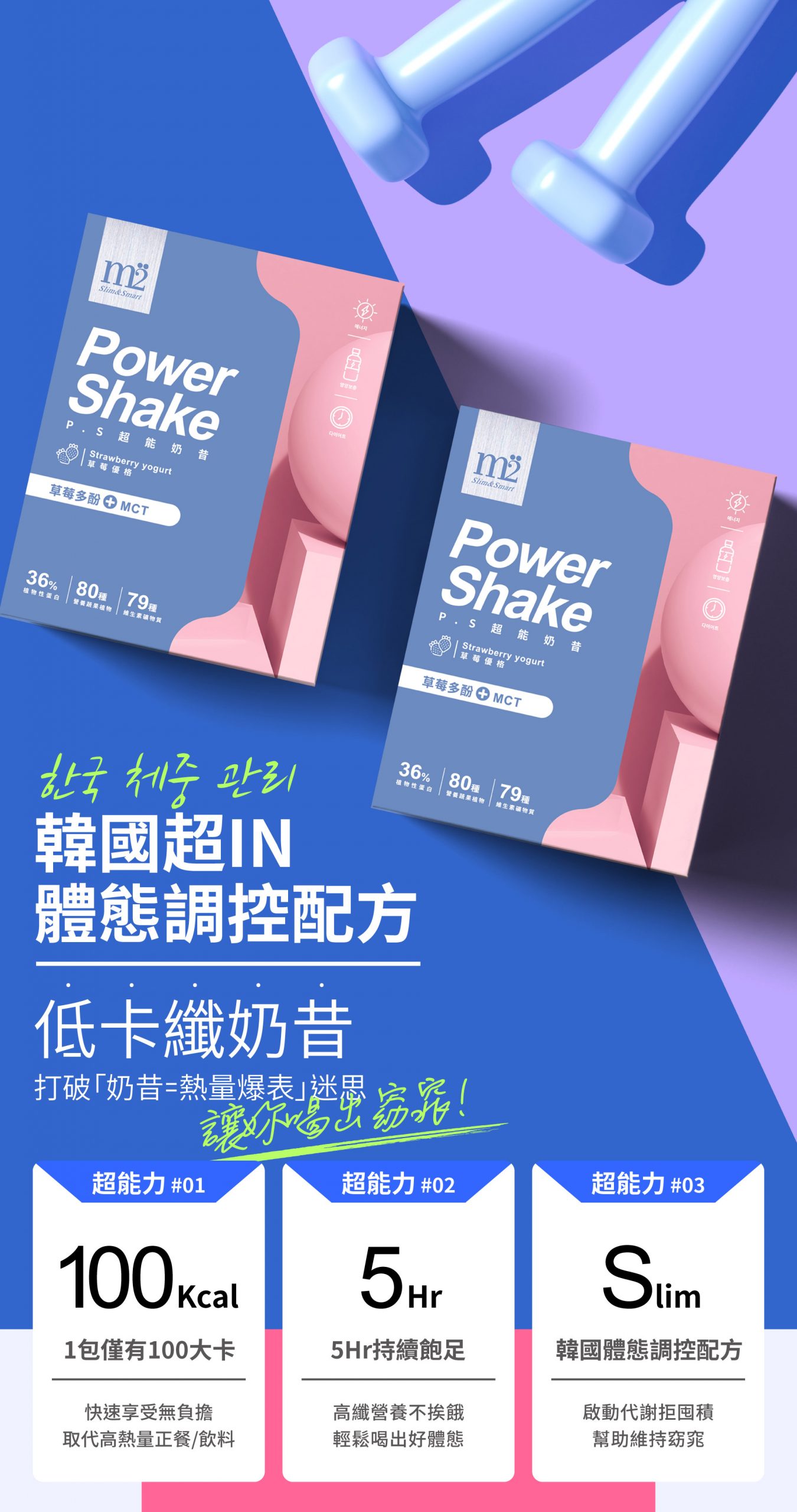 M2輕次方超能奶昔是由專業體重管理師、營養師、皮膚科醫師共同研發,含36%蛋白質、80種高纖蔬果酵素與79種礦物質維生素,體態控制的同時也能夠攝取到滿足一日所需的營養素,並添加獨家控卡代謝配方、超級藤黃果、專利魔芋纖維和乳酸菌,每天一杯就能提升身體代謝,幫助體態窈窕!
