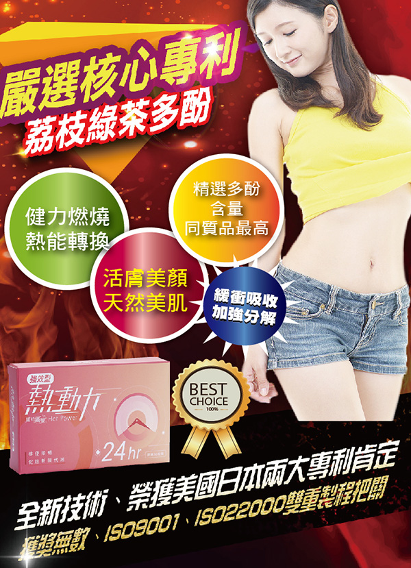熱動力膠囊同時獲得國際ISO、美國FDA、日本產經省專利、猶太與清真認證和新光產險千萬保額等五大保證!纖知纖覺熱動力膠囊可以加速脂肪代謝、轉化熱能、擊退水腫和分解毒素,助你矯正肥胖,輕鬆打造凹凸有致的S曲線。熱動力膠囊是海內外年度最火紅的減肥產品,幫助數以萬計肥胖者雕塑自信身材,輕鬆找回馬甲線。