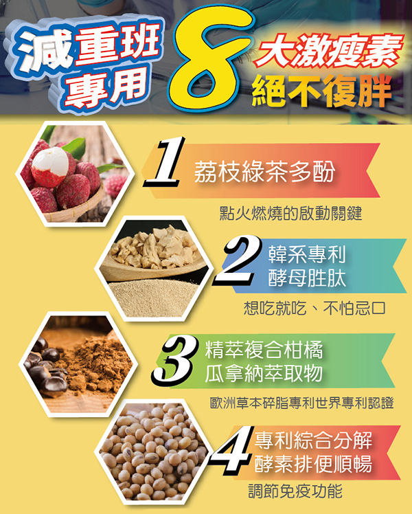 纖知纖覺二代強效型熱動力獨家專利配方,研究證實熱動力膠囊含有6大激瘦素,使減肥效果加倍不復胖。左肉旋酸成分專門打擊難瘦部位,燃燒頑固脂肪。專利荔枝綠茶多酚阻止脂肪囤積、提高代謝率。綜合酵素幫助腸道消化吸收、藤黃果萃取物參與代謝防止脂肪堆積。